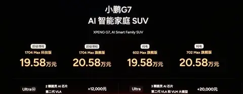 1月8日,2026小鹏全球新品发布会上,小鹏汽车一口气上新4款新车,其中包括2026款小鹏P7+、2026款 小鹏G7(参数|询价)、2026款小鹏G6以及2026款小鹏G9。乍眼看上去好像并没有太多“新意”,但大家可能不知道的是,2026款小鹏P7+以及小鹏G7均推出2款超级增程车型,售价区间18.68万元-20.58万元。