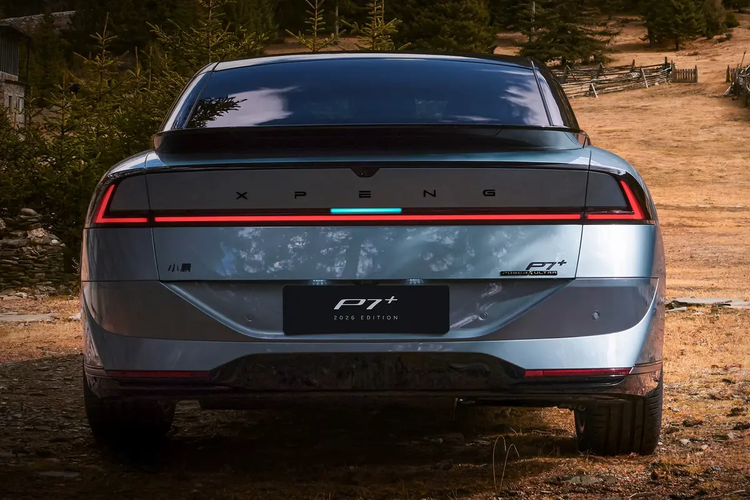 首先来看2026款小鹏P7+增程版。新车延续纯电版车型的整体外观设计,家族式的前脸造型,贯穿式LED灯带配合分体式头灯组,整体的辨识度非常高;同时新车依旧采用无边框车门、隐藏式门把手等时尚设计。