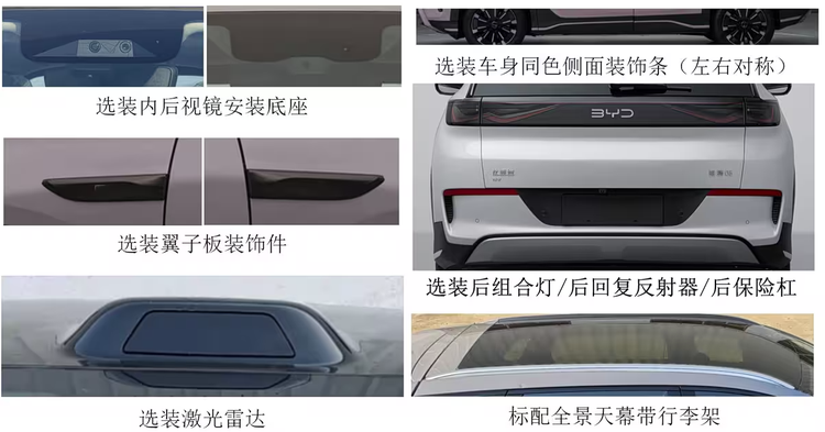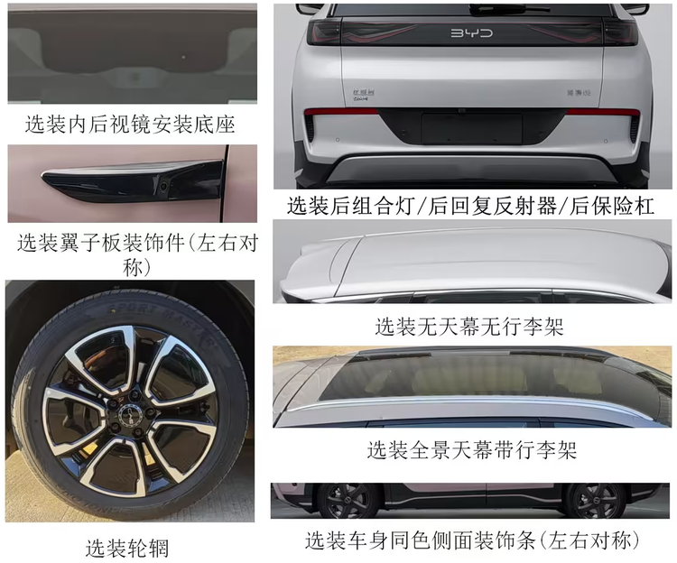 从申报图来看,新款海狮05基本延续了老款EV版本的整体造型,但在细节上有所优化。DM-i与EV车型的外观差异被缩小至最低程度,主要区别仅在于装饰细节:EV版采用黑化风格,而DM-i版的侧窗沿用镀铬饰条。