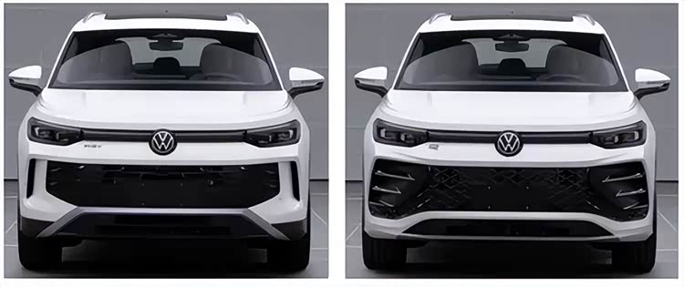 另一套是R-Line版,这个就有点意思了,格栅变成了菱形结构,两边还加了那种类似风刃的装饰条,目测凶了不少,运动感倒是拉满了。