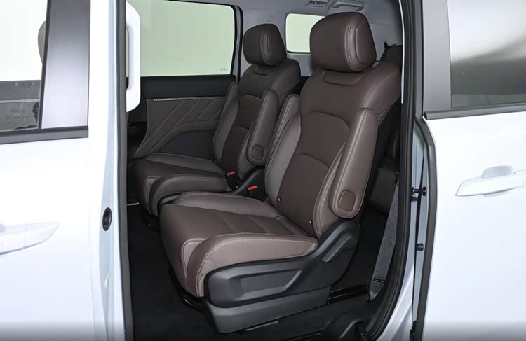 - 2+2+3布局 + 230mm中央通道:第二排独立航空座椅宽大厚实,坐垫长度和填充柔软度接近中端商务MPV水平。更关键的是,两座之间留出230mm通道,成年人能轻松步入第三排,不用再“爬进爬出”。