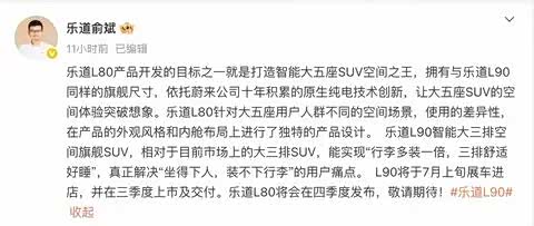 乐道L80/L90的定位差异大概率仅会存在于座椅布局方面,都瞄准主打家庭市场。懂车之道认为,过去这种都是一款车型不同的版本,到乐道这里,成了两款车,定价也许很考验乐道高层,定价如果比乐道L90太多,对于老用户也需要割韭菜。参考现有曝光的信息,懂车之道猜测,乐道L80的最终定价或接近多款中大型SUV接近。想要了解更多新车资讯,购车行情,欢迎留言互动。大家购车一定要理性消费。(图:来源网络;文:懂车之道 刘宇 编辑)