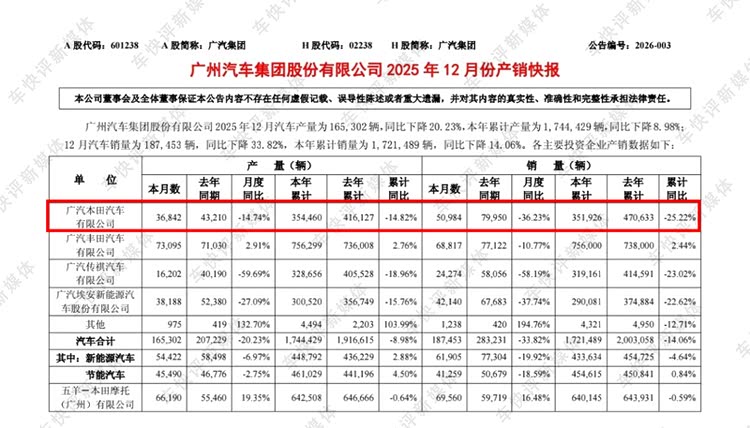 但即便如此,广汽本田在刚刚过去的2025年,还是交出了一份不尽人意的答卷。