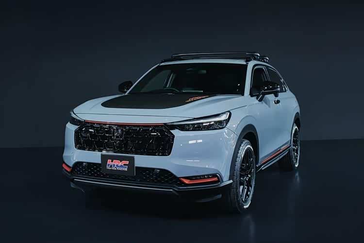 此回 本田 特别展示 CR-V、ZR-V、缤智 及 WR-V 等四种版本的 TrailSport HRC 概念车,最大亮点在于采用全新的蓝灰色专属涂装,且在车身多处加入橘色设计元素点缀,而引擎盖新增避免反光的黑色雾面饰贴,前保险杆也多出金属下护板,可防止车身受损。除此之外,四款 TrailSport HRC 概念车皆换装黑色轮圈及 Dunlop Grandtrek AT5 全地形轮胎,车顶也加装置物架,借此强化月也表现及载物性能。