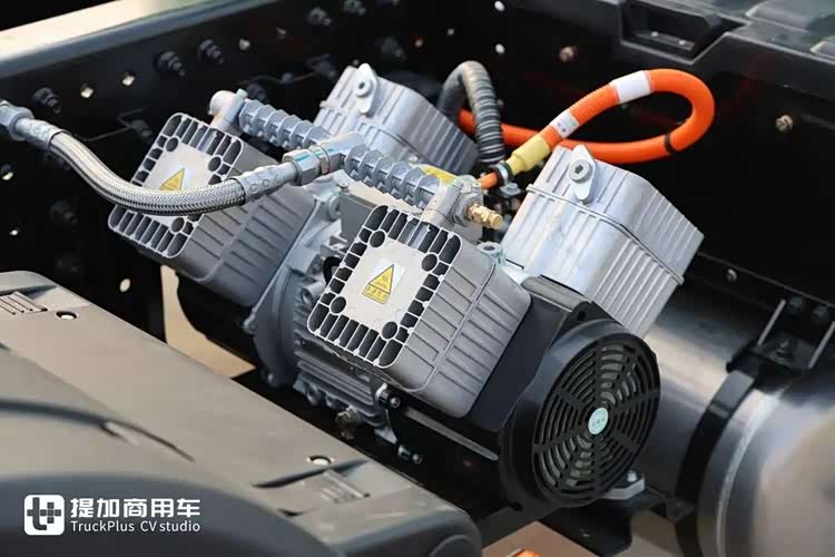 原厂标配电子四缸打气泵,打气效率不亚于柴油机双缸打气泵,可以及时的给车辆供给压缩空气,确保制动安全和用气及时。
