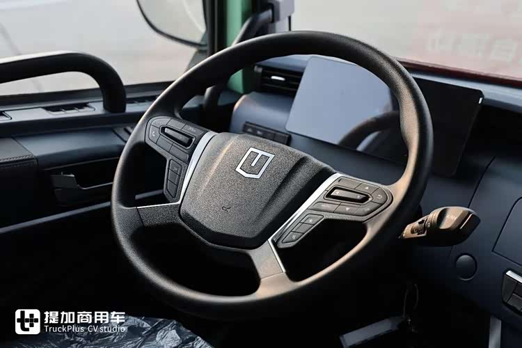 驾驶区域的风格很明显是参考欧卡的这类设计,四幅式多功能方向盘搭配怀挡换挡机构,大幅提升车辆操作便捷性。工作台为环绕式布局,带一定倾斜角度,分区非常明显,风格简洁。工作台自上而下为液晶大屏、空调面板以及下面的按键,出风口是总主驾位置一直贯穿到副驾的,颇有北欧风。