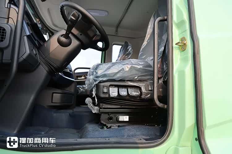 主驾采用气囊减震座椅,带有阻尼调节、一键充放气、座椅高度、仰角调节,并支持腰部支撑的功能,坐垫偏柔软,座椅包裹性强,在这个定位的车型中已经算是高配了。