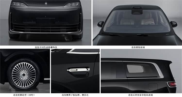 新车同样采用了有鲲鹏展翼前脸,拥有三段式贯穿灯带,并且灯带下方还有一条贯穿镀铬饰条,而矩阵式大灯应该也会有华为智能像素大灯。下进气格栅提供两种设计——双镀铬饰条贯穿设计与星辉格栅样式,前唇则是贯穿饰条和两侧垂线的C型设计。整个前脸确实很有尊崇感,但不是那种浮夸的满脸镀铬。
