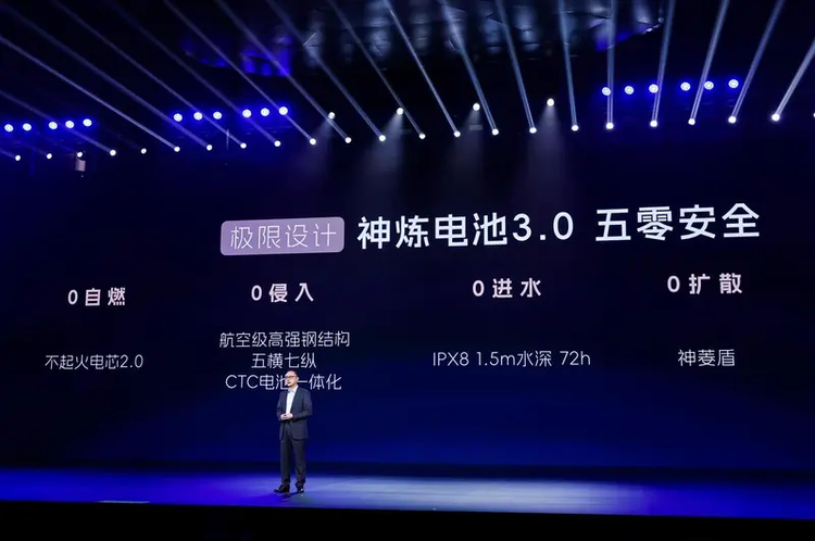 在电池技术方面,五菱拿出了神炼电池3.0,以不起火、不爆炸为最高目标,可实现0自燃、0扩散、0进水、0侵入、0泄露;未来的4.0版本,则会陆续加入800V高压平台、CTB等核心技术架构。