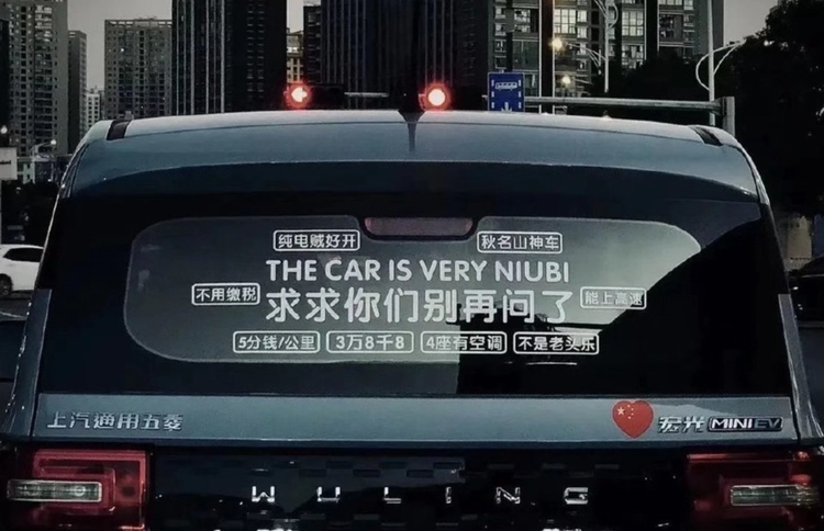 在一张广为流传的车贴上,印着“纯电贼好开、能上高速、不是老头乐、5分钱/公里、四座有空调、不是老头乐”等字样。