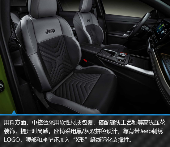 全新Jeep Compass的内饰设计融合了科技感、实用性与硬派基因,通过不同材质搭配、智能交互升级和空间优化,打造出兼具豪华氛围与功能性的座舱环境。