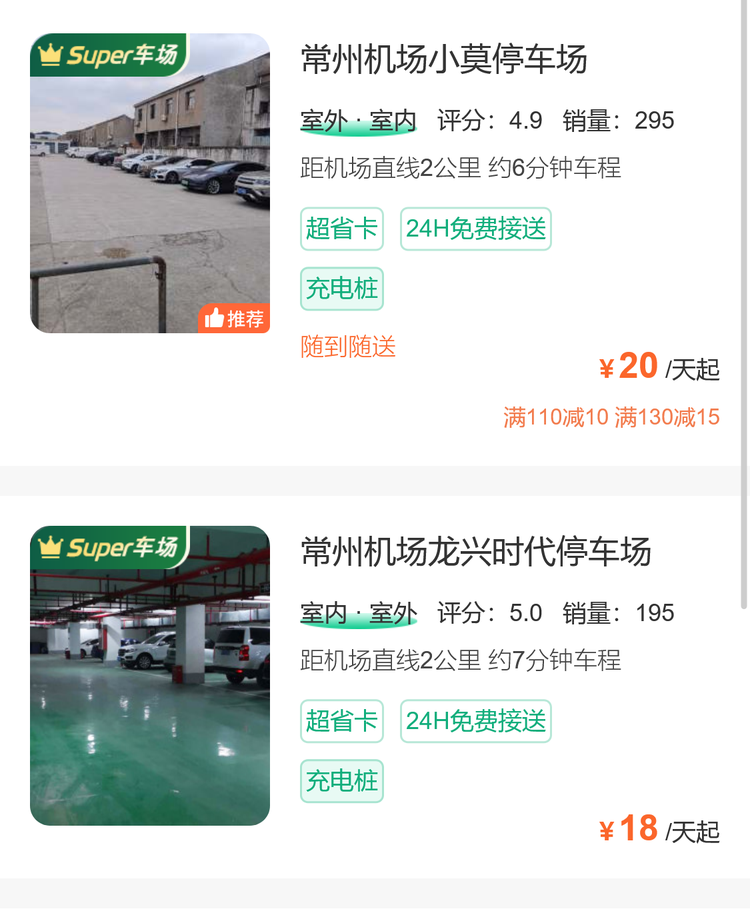 在常州机场停车的新方案——先把车停到机场附近的停车场,然后通过停车场的免费接驳车来往返航站楼。由于附近的停车场收费比机场便宜(18到20一天),通过这种方式达到节省停车费的目的。优点是省钱,缺点是多了接驳环节,更适合停车多天的旅客。