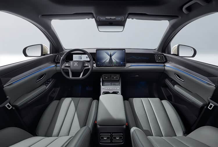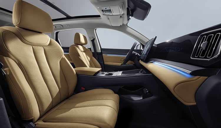 车内方面,新车也同样延续现款在售车型的整体内饰设计风格以及布局,简约的T字型座舱,镶嵌式液晶仪表搭配中央大尺寸悬浮pad,中控台处以及门板处均配有钢琴烤漆面板进行装饰,并且全系搭载电子怀挡。