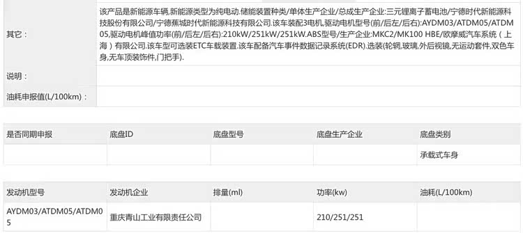 根据工信部申报信息,三种动力方案的参数清晰明确: