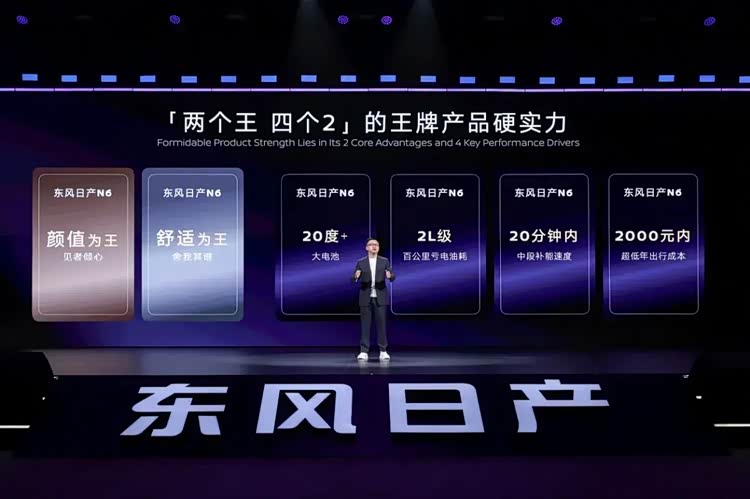 2025年底,东风日产又推出了AI云擎电混系统,并首搭N6车型上,也就是这两天全网讨论特别火热的“两个王四个2”——2025年12月1日,在N6上市发布会上,东风日产汽车销售有限公司新能源品牌总经理王骞表示:“N6手握‘两个王四个2’,友商恐怕要不起。”