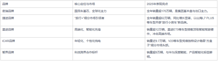 基础表格:奇瑞集团2025年品牌销量结构概览