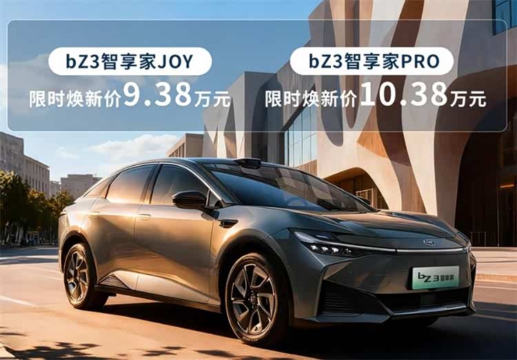 不过随着这两年市场的变化,一汽丰田也已经适应了新能源市场的节奏,调整好自身定位,通过产品升级、降低售价的方式,增强bZ3的性价比优势,从而提升品牌在新能源市场的表现。最近新上市的2026款丰田bZ3智享家,官方指导价10.98-15.98万元,相比以往已经务实了不少,而且在此基础上还给到用户更优惠的限时焕新价,比如入门款的bZ3智享家JOY,指导价10.98万元,实际可享焕新价9.38万元——如果和当初16.98万元的指导价相比的话,折扣力度来到了五五折。
