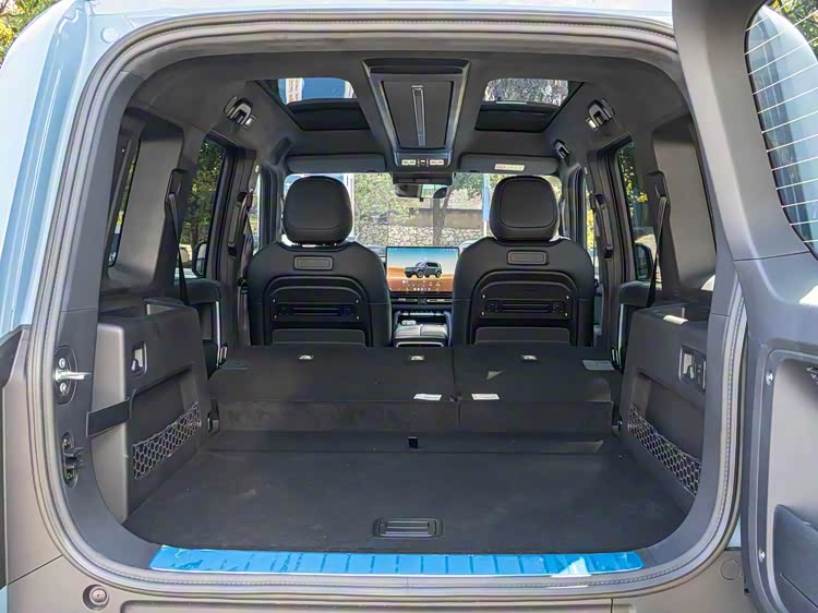 车身造型方方正正,棱角分明,线条硬朗,还有外扩式轮眉、D柱盲窗、外挂式备胎、侧开式尾门等凸显其“硬派”风格,还配备了左右分体式天窗、黑色车顶行李架、黑色车窗装饰条、传统造型车门外拉手、固定式踏板等,提供19英寸和21英寸两种规格的轮辋,而车尾部分采用上窄下宽式设计,尾灯由两个竖向排列的方形组成,点亮后辨识度比较高。