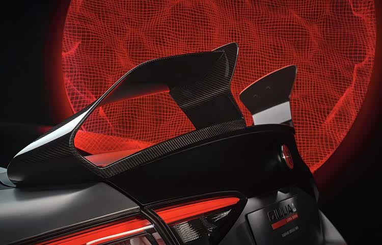 外观手工虹彩漆是亮点,不同角度看颜色会变化,视觉效果独特。碳纤维前铲、侧裙、双翼尾翼全是真材实料,不是装饰件,实际降低了车重提升了下压力。Luna Rossa帆船队标识遍布车身,联名身份一眼就能认出。