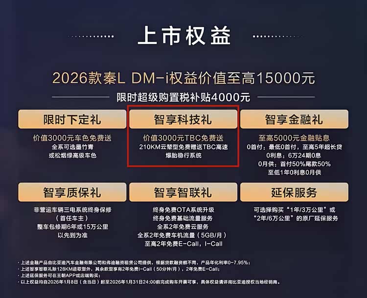 可以随着2026款 秦L(参数|询价) DM-i的上市,却打破了我的固有认知,新车限时售价9.28-12.28万元,关键是210KM云辇型免费赠送TBC高速爆胎稳行系统!要知道这是“百万级”车型上才会搭载的技术,现在却下放到了10万级车型上,比亚迪这一炮,让对手猝不及防!也给“后来者”打了个样儿。
