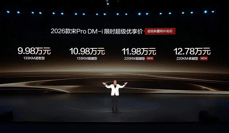 车家号·0浏览·2026-01-13 00:19 · 上海市2026款比亚迪宋Pro DM-i长续航版正式上市,核心升级聚焦续航提升,同时新增两款车身配色,售价与此前115公里续航版保持一致,实现“加量不加价”的诚意升级。
