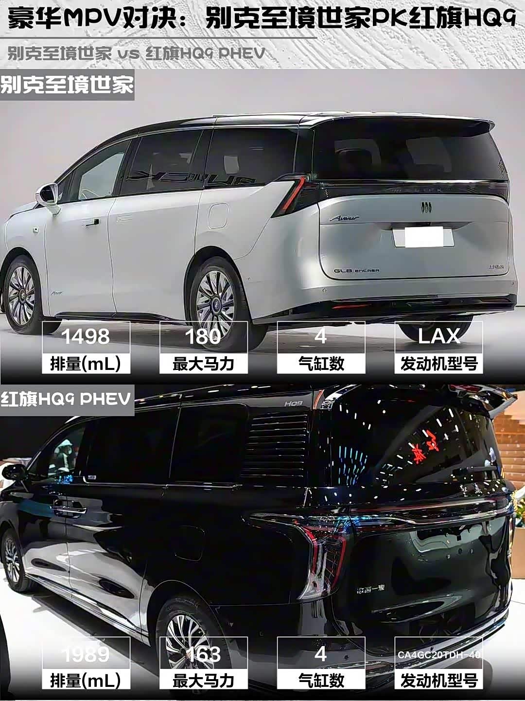 最近在选豪华MPV的朋友看过来!今天深度对比两款热门车型——别克至境世家2026款奢享版和 红旗HQ9 PHEV(参数|询价) 2024款2.0T四驱旗舰版,看完这篇你就知道哪款更适合你!🔥