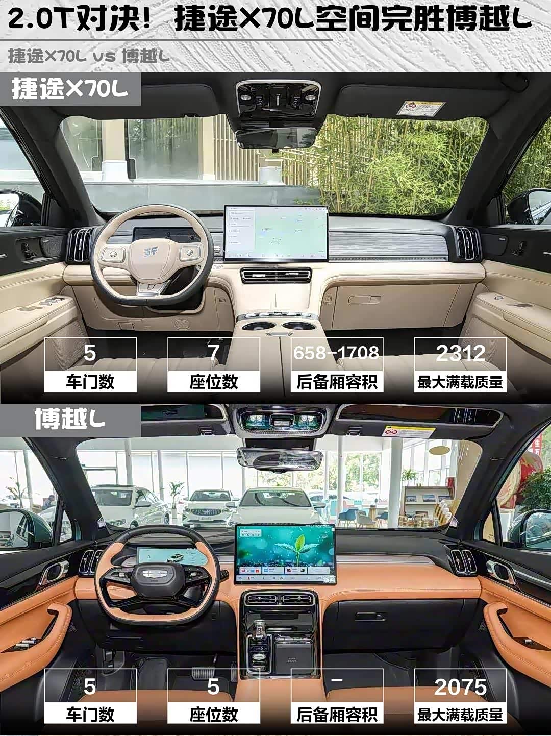 个人建议:经常全家出行选捷途X70L,7座刚需+超大空间真香;小两口或单身贵族选博越L,智能配置和驾驶乐趣更突出。话说你们会更看重空间还是智能体验呢?