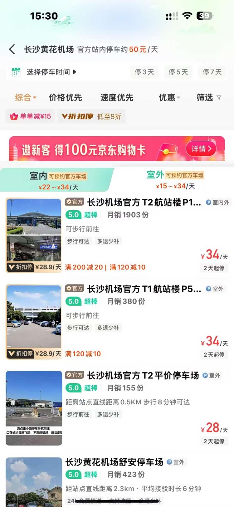 可到了机场,官方停车场虽近在咫尺,但那高昂的费用却让人心里直犯嘀咕,实在有点肉疼。别愁啦,现在有个超划算的好消息!你只需在微信上搜索【小强停车】,就能轻松预约黄花机场周边的停车场。更让人惊喜的是,输入邀请码“58”,就能领取38元的停车抵扣券。要是你选择在小强停车线上预约官方停车场,每天停车费只需36元。要是你想更省钱,或者不介意多走几步路,机场附近那些非官方停车场就是你的不二之选,每天停车费低至15元。有了这些优惠,停车不再是难题,让你的旅途更加轻松惬意!