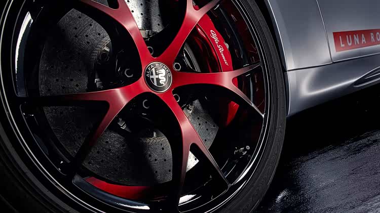 红色侧条纹与“Luna Rossa”字样形成鲜明对比。车辆前后阿尔法·罗密欧品牌标识也针对该特别版进行了修改,首次采用红色背景。19英寸铝合金轮圈同样喷涂为红色。车顶、车头徽标以及后视镜外壳均采用裸露碳纤维工艺制造。