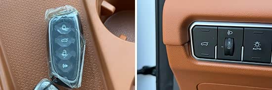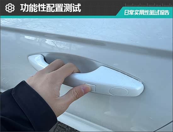 评测车配备前排无钥匙进入功能,并支持遥控钥匙、蓝牙钥匙进入方式。车门把手采用常规设计,当携带遥控钥匙靠近车辆后,将手伸入门把手便可解锁车辆,锁车只需轻触门把手末端“方块”处即可。在实测过程中并未出现失灵或是卡顿情况,实用性表现符合预期。