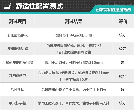 二、舒适性配置测试