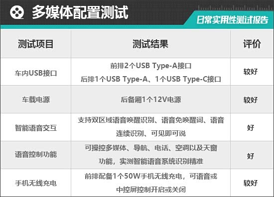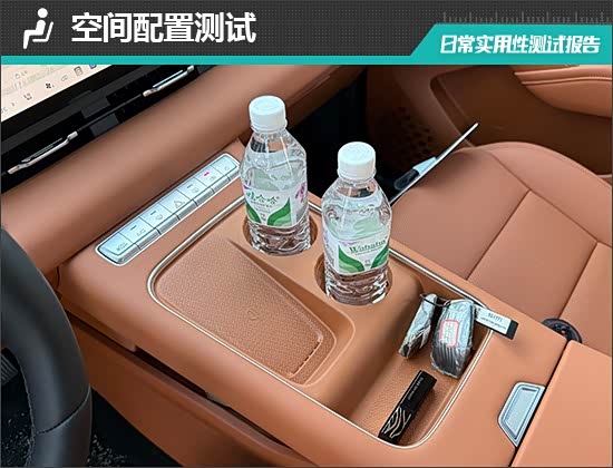 经过实测,评测车的储物数量较多,除了没有配备专属的眼镜盒外,其余物品均能找到合适的位置摆放,储物能力能够满足日常使用需求。