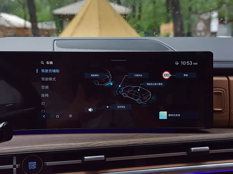 辅助驾驶方面,新车搭载Hyundai Smart Sense 智心合一安全系统,提供前方碰撞预警、前方防碰撞辅助、回避转向辅助、车道偏离预警、车道防偏离辅助、驾驶员注意力警告、车道居中保持、自适应巡航控制、NSCC基于导航的自适应巡航、 高速公路驾驶辅助(辅助变道)、遥控泊车辅助等功能。