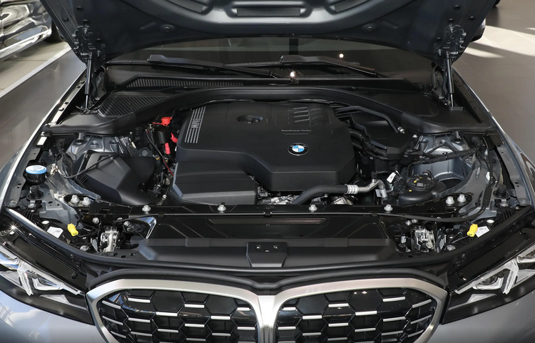 宝马3系的外观采用了家族式设计语言,双肾格栅与天使之眼大灯彼此搭配,让人一眼就能辨识到它的身份。机舱盖两侧的筋线向上隆起,营造出不错的现代气息,前包围处的黑色元素予以修饰,运动气息进一步强化。枪灰色轮毂造型独特,18/19英寸的尺寸放在该车上属于中等水平。新车的中网、车窗和后包围等区域通过大面积黑色元素点缀,运动气息直接拉满。4728mm的车长带来2851mm的轴距,放在中型车领域属于较高水平。来到宝马3系的尾部,动感的小鸭尾可优化空气动力,与双边共双出排气口彼此搭配,进一步强化尾部运动气息。