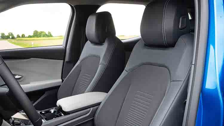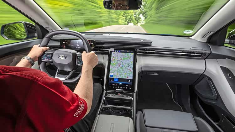 总体而言,下单配置几乎不需要纠结太多。价格表相当清晰,而在Premium版本中,已经包含了大多数“快乐驾驶福特”所需的配置。例如:20 英寸轮圈、电动调节座椅(含按摩功能)、矩阵式LED大灯、手机无线充电板,以及电动尾门。我们测试车上的实用选装包括:人体工学座椅(400 欧元)、驾驶辅助套件(1200 欧元),包含热泵、360度环视摄像头、车道居中辅助以及抬头显示系统。