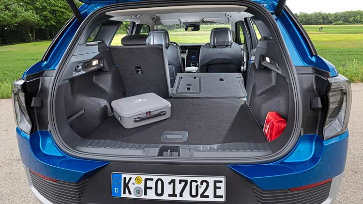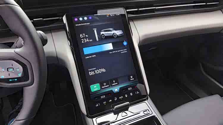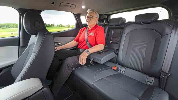 作为一台长途电动车,它的优势还在于车内乘坐体验相当舒适。内饰材质和触感,甚至比大众集团的“沃尔夫斯堡亲戚”略胜一筹。配置实用,操作基本直观,前文提到的空调控制算是少数例外。前后两排座椅的品质同样出色。悬架的滤震表现也值得肯定,即便面对较大的路面不平,也能有效化解。这当然也带来了一定代价。在高速过弯时,会出现轻微侧倾。在普通公路上几乎无感,但在测试场地的激烈驾驶中,它有时会在ESP迅速介入前,略显慌乱。
