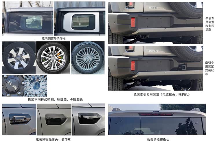 动力为其亮点之一。新车有多个电池版本,纯电续航里程从122到170公里不等,能满足日常短途出行。该设备仍然配备了1.5T的增程动力系统,其增程器的最大功率达到138千瓦,并且动力输出非常稳定。在尺寸方面,这款车的长、宽、高和轴距与市面上的其他车型保持一致,但其整备的最大重量已经增加到2705公斤,这意味着它在稳定性方面可能会表现得更为出色。此外,牵引专用装置和侧视摄像头的选择安装配置也使其具有一定多功能性。如果喜欢越野和追求个性的BJ40增程版就应该引起重视。