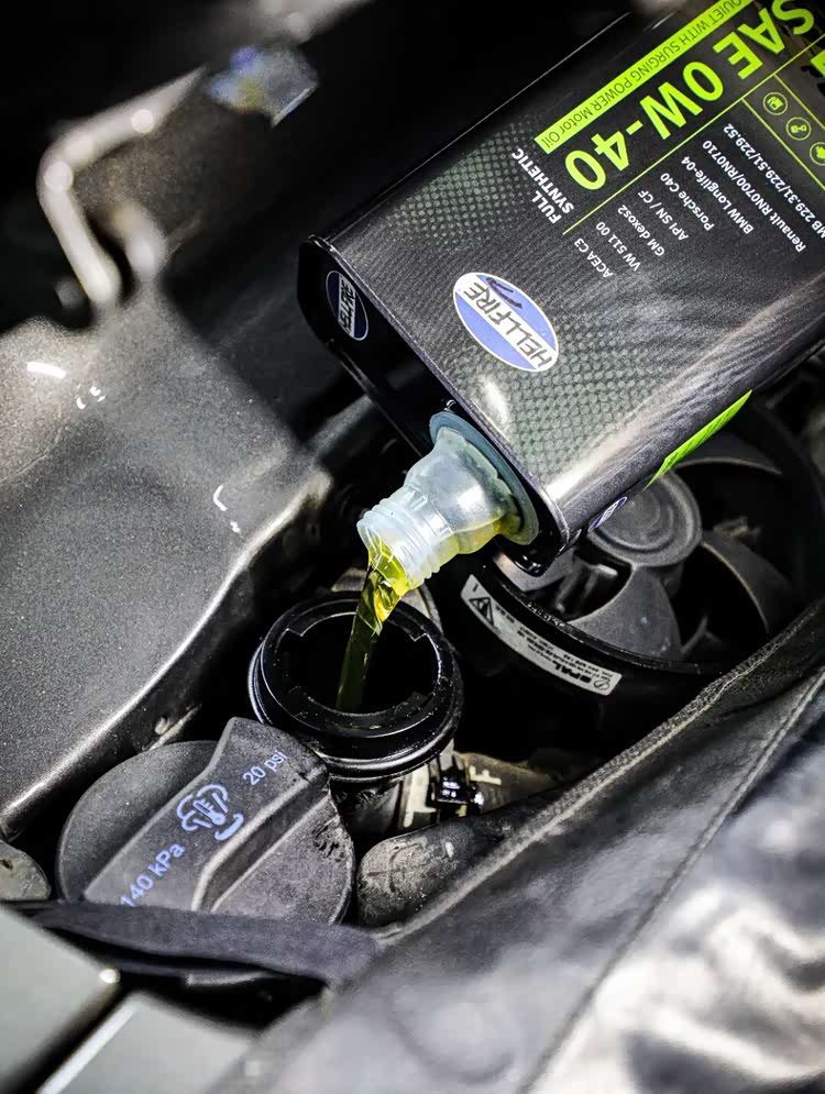 加注新机油后,技师补充了地狱火发动机保护剂 ,给引擎加上 “双重保险”:它同时兼容汽油/柴油发动机,能减少沉积物生成、增强磨损防护,还能调节油封密封性,缓解烧机油、渗漏问题;