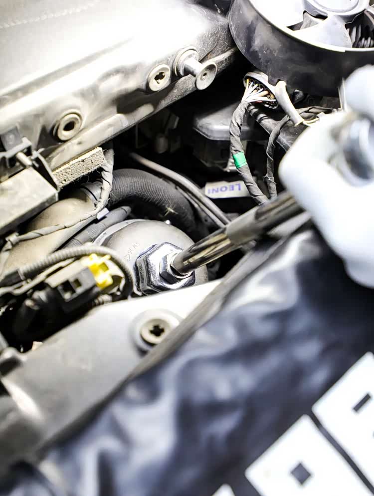 在更换机油前,技师首先使用地狱火发动机&变速箱清洗油对保时捷911的引擎进行预处理: