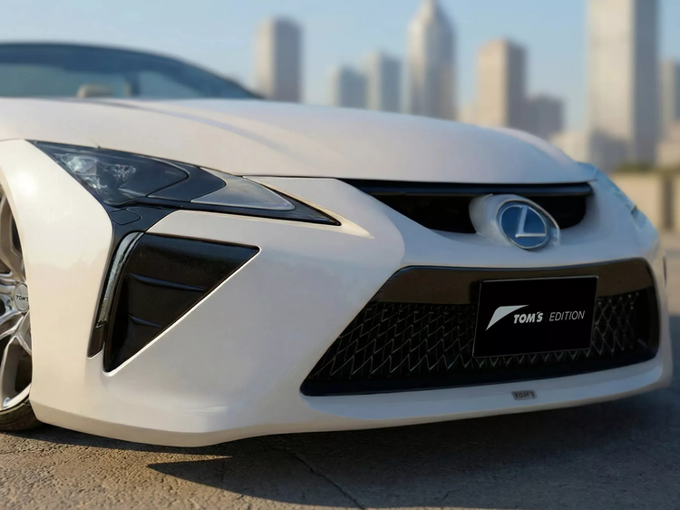 雷克萨斯LC Tom’s Edition前脸格栅进行了分割设计,原本一体式纺锤形格栅被拆分为两部分,依然保持“X”造型,但整体视觉更低调。前包围增加大尺寸三角形通风口及前唇,有助于空气导流和冷却效率,同时兼顾前脸运动感和视觉厚重感。这种设计适合希望低调但不失操控感的用户。