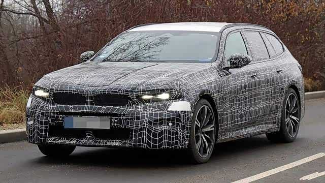 在海外公路上,有媒体拍摄到了宝马5系Touring的伪装测试车,外观大变样,车辆的伪装车衣覆盖了车顶之外的区域,就像前几天我们在前脸上看到的设计一样,宝马5系Touring虽说也在完成“NK化”,但它的特别之处就在于完成了传统双肾与新格栅的融合。这里既有格栅与大灯之间的融合过渡,也保留了传统格栅的占位比例,特别是大灯产生的“飞翼”样式会让这里产生更直接的宽体效果,运动感还是给得很直接的。