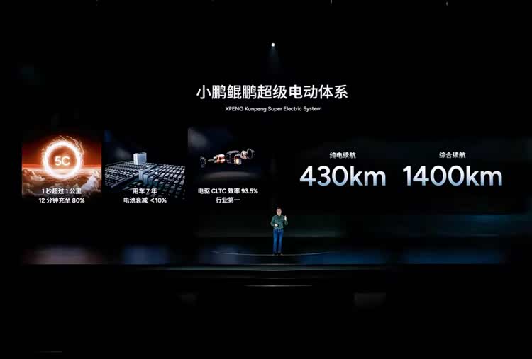 最后再跟大家聊点这车在技术层面上的亮点,首先是新车将会搭载小鹏最新的超级增程系统,做法和理想L系列类似。其次,这车是基于800V架构打造,有5C超充,而且纯电续航能跑430km,综合续航1400km,这就意味着它配的是大电池,怎么着应该也得50-60度电以上了吧?