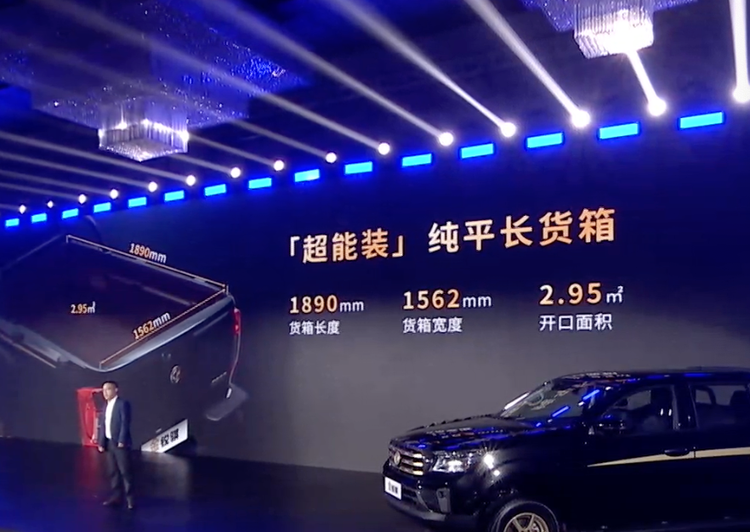 超能装纯平长货箱,1890mm货箱长度,1562mm货箱宽度,1.95平方米开口面积。
