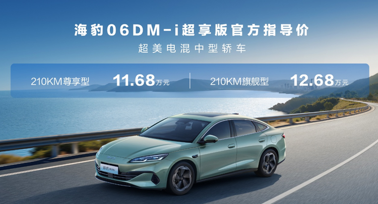 海豹06DM-i超享版,这一次加推的210KM尊享型、210KM旗舰型两款配置,在驾控质感、舒适配置及安全守护等方面实现了全面进阶。