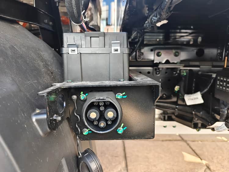 纯电车型车架左右两侧各有一个充电口