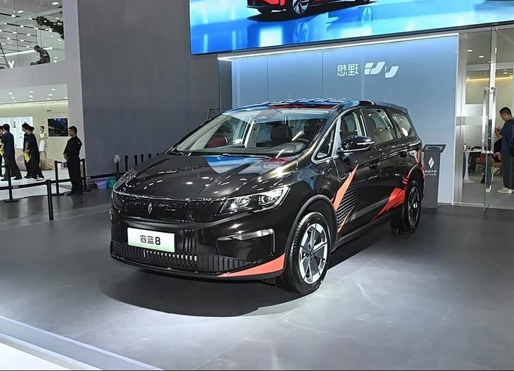 先看这副“实在人”的长相。新款睿蓝8外观变化不大,还是那个方方正正、规规矩矩的模样,封闭式前脸挺简洁。这种MPV经典造型,好处就是把所有空间都留给了车里的人。车长超过4米8,轴距2米8,妥妥的紧凑型MPV身材,里面塞下了2+2+3的七座布局。这体格,跟市场上同价位的比亚迪宋MAX EV比,在空间利用的纯粹性上更专注。后者多少还有点跨界车的影子,而睿蓝8就是直给:我就是个拉人载物的“空间魔术师”。