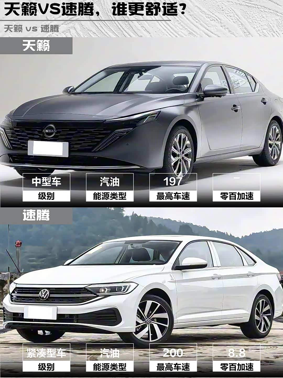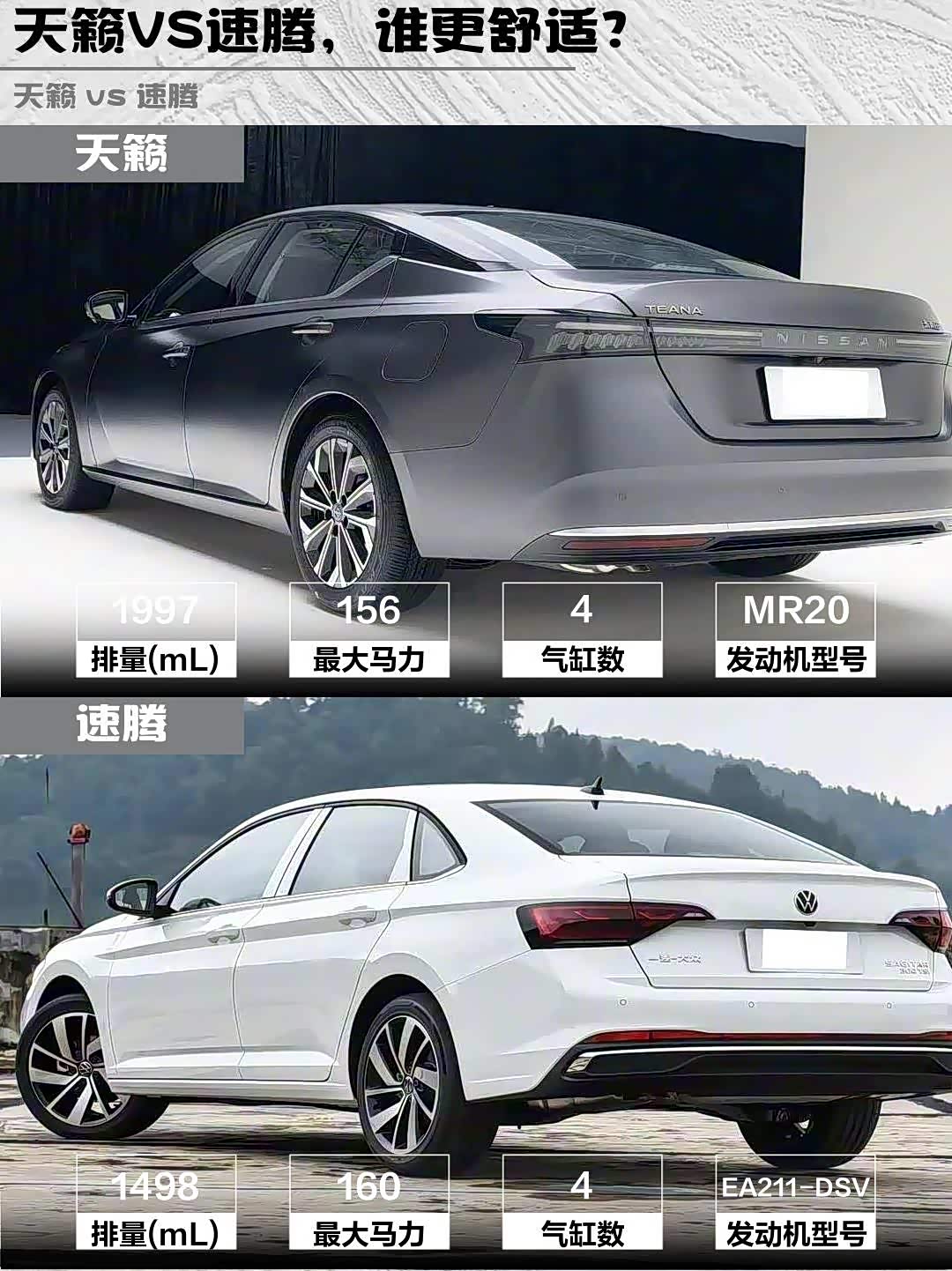 最近在选车的小伙伴看过来!🚗 今天深度对比两款15万级热门家轿——2026款天籁鸿蒙座舱2.0L智能超舒适版 vs 速腾(参数|询价)3000万辆甄选款300TSI DSG超越版,实测干货直接上!👇