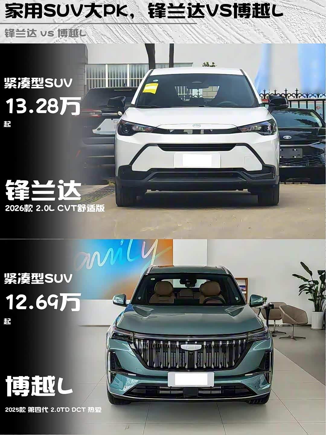 最近在选15万级SUV的朋友看过来!今天深度对比两款热门选手——丰田 锋兰达(参数|询价)2026款2.0L CVT舒适版(13.28万)和吉利博越L 2025款2.0TD DCT热爱(12.69万),看完这篇你就有答案了!🔥