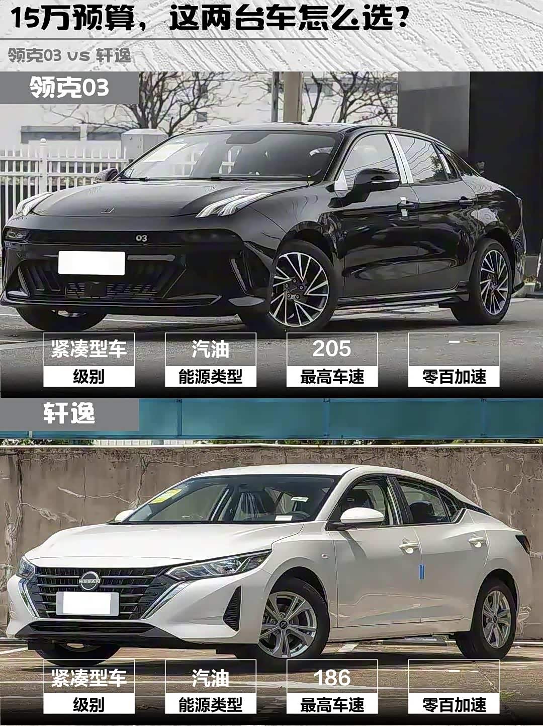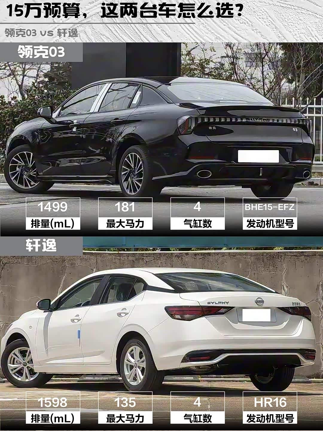 最近在选15万级家轿的朋友看过来!今天深度对比两款热门选手—— 领克03(参数|询价) 2026款 1.5TD DCT Plus和轩逸2026款 1.6L CVT省心版,看完就知道哪款更适合你!🔥