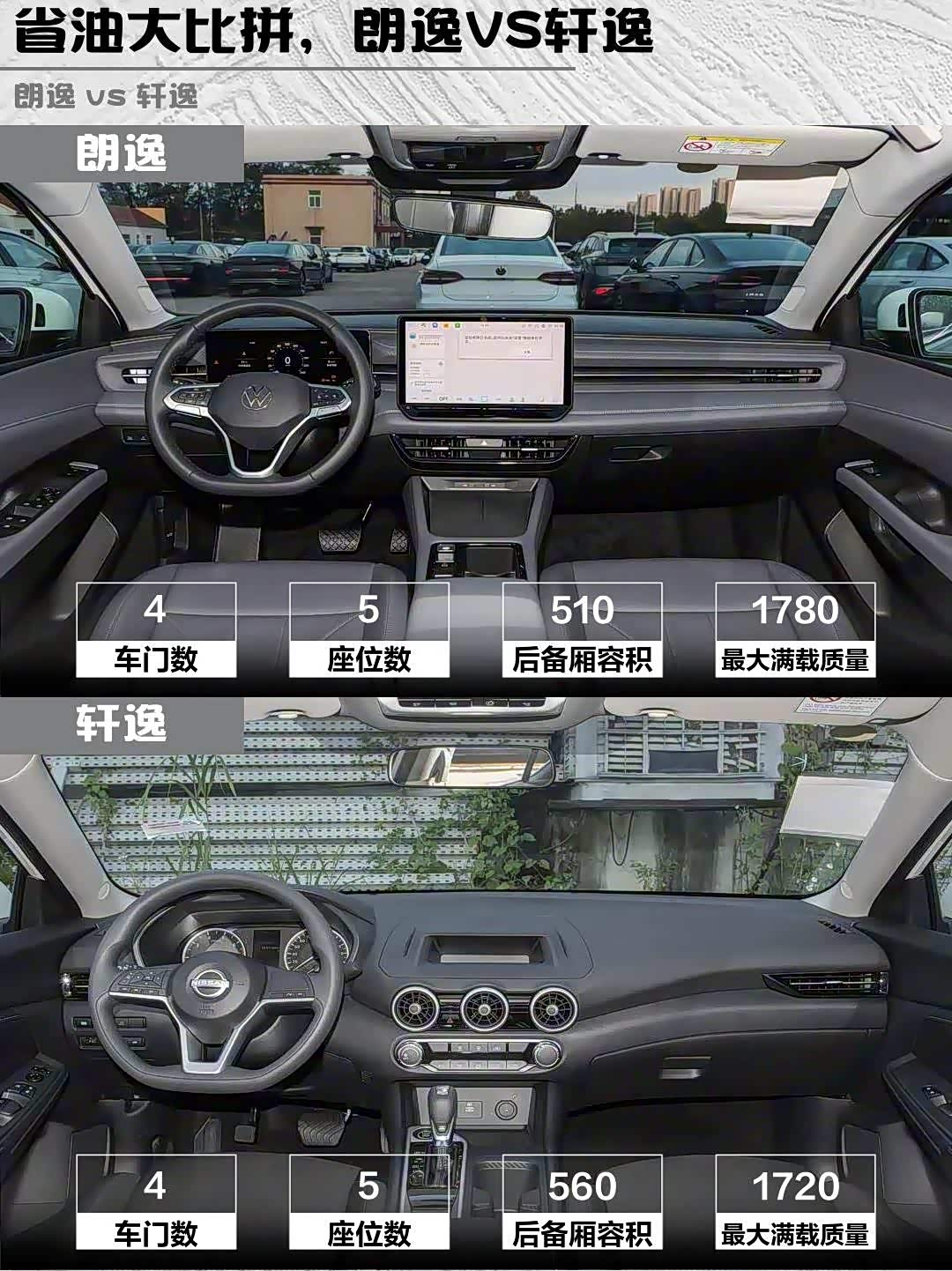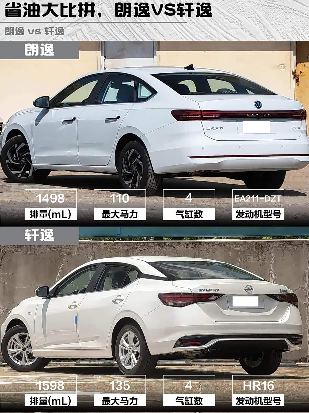 两车都是省油能手!朗逸WLTC 6.06L/100km,轩逸5.94L更胜一筹。但朋友实测朗逸国道能跑到4.3L,轩逸高速最低4.2L,实际差距不大。加油都吃92粗粮,轩逸47L油箱比朗逸51L小点。